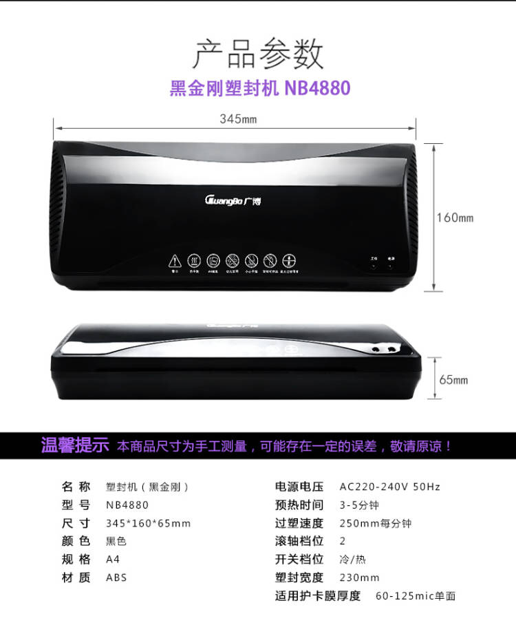 廣博 智能溫控黑金剛過塑機(jī)/塑封機(jī) 熱裱/冷裱過膠膜機(jī)A3 NB4881
